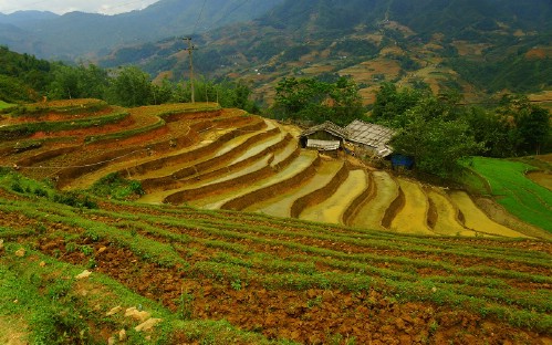 We continue to trek more 4 Km through terraced rice fields to Ta Van village of the Dzay minority people. This is a good chance to learn about the local architecture, daily life styles and customs.