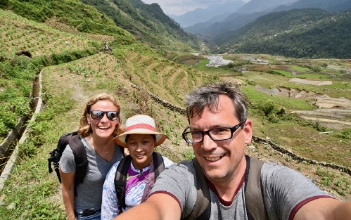 We start 3km of walking down to the south east of Sapa along the side of Muong Hoa valley to Y Linh Ho village of the Black H’mong - visit local school and local houses then continue 4km of trekking down to Lao Chai village of the H’mong.