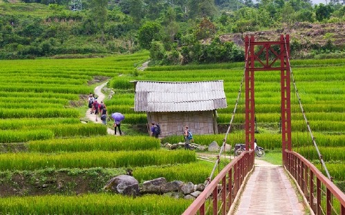 9.30 We will trek on a hilly trail around 3 km throught Bamboo forest to Giang Ta Chai village where you can see the Red dao minority people. You can make a stop at a waterfall for taking the photos. Have soft break at rattan bridge –the oldest rattan bridge in Sapa. Visit some house and continue to go to Supan village. Have lunch at the village