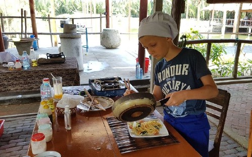 - To visit the Local Village, we take a row boat ride through the water coconut trees. We then walk through the gardens to our open-air cooking class overlooking the water coconut trees and river. Our chefs will show you how to make Vietnamese food while you enjoy the cool breeze and peaceful setting.