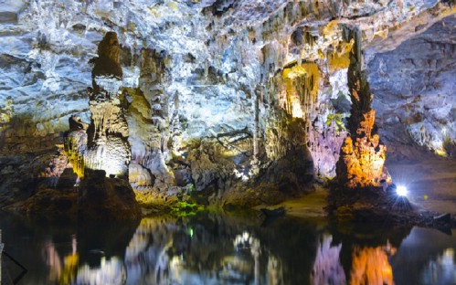 - 13:30: After lunch, We visit Phong Nha caves (50 km about the city, 45 minutes driving). After 25 minutes on boat, we will arrive at Phong Nha cave, take a couple hours to see the cave. This cave is called as water cave, is famous for its rock formation which has been given names such as the "Lion", the "Fairy Caves", the "Royal Court", and the "Buddha".