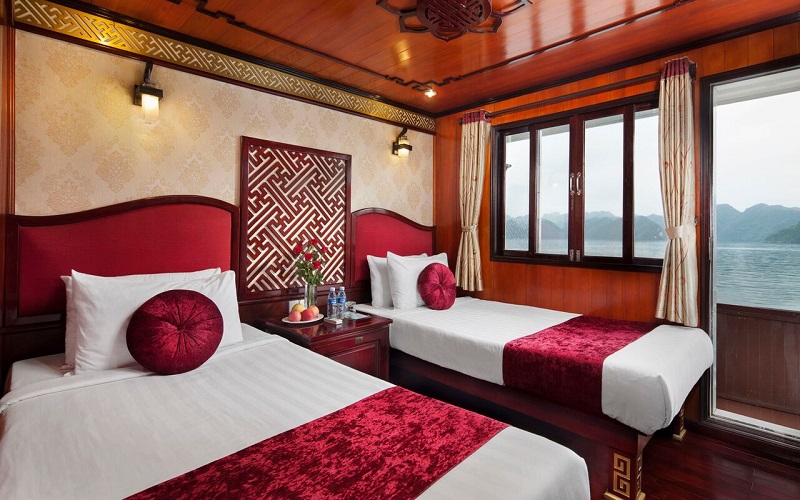 <li>22:00: Overnight on Rosa Cruise near Surprising Cave, the quietest sleeping area permitted by Halong Governmental Authority.</li>