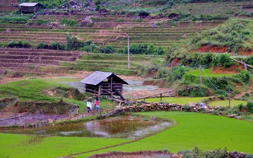 We continue to trek more 4 Km through terraced rice fields to Ta Van village of the Dzay minority people. This is a good chance to learn about the local architecture, daily life styles and customs.