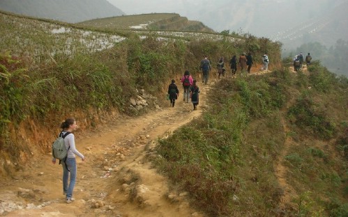 We start 3km of walking down to the south east of Sapa along the side of Muong Hoa valley to Y Linh Ho village of the Black H’mong - visit local school and local houses then continue 4km of trekking down to Lao Chai village of the H’mong.