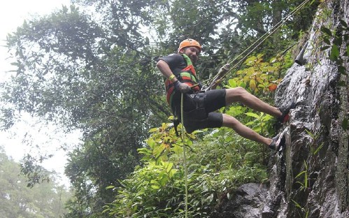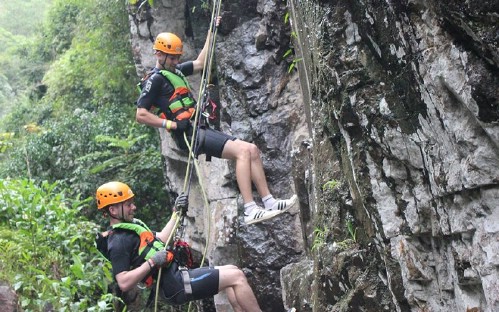 Dry cliff at 18 m - First activity, After we mastered the skills to rappel down the steep cliffs. Quiver is for sure because of the first time to test your skills but very excited to launch yourself into the air and landed safely.