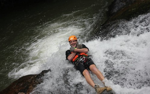 “Washing Machine”- You will walk down until your back touches the waterfall, take a deep breath to increase hot blood up to your brain, straight the legs, wide eyes and relax your body. It will spin you around, clean your body and push you out of the falls before hiking up to thehighway and meet our vehicle for transport back to town.