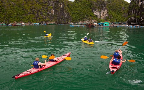 15:00: You at Tung Gau Area. The airy and fresh air, cool breezes, blue sea and sky, and natural seascape will captivate any visitors setting foot here. Especially, Tung Gau of Lan Ha Bay is extremely suitable for enjoying kayaking and swiming and then Visiting Halong Pearl Farm Village
