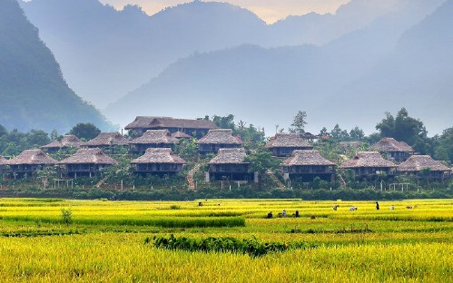 07.30 - 08.00 Am: Our touguide and shuttle bus will pick up at your hotels/hostels in the Hanoi Old Quarter. It takes around 4 hours to Mai Chau, stops at Hoa Binh for short break. On the way to Mai Chau, you will pass through the lush valley, rich with rice fields.