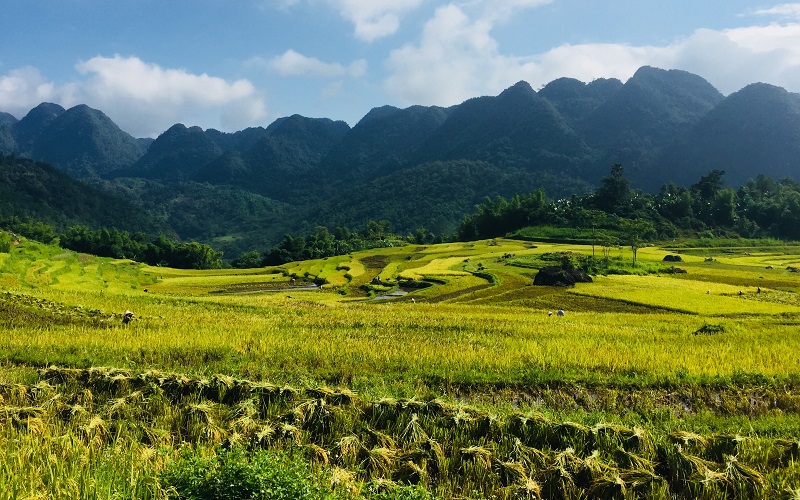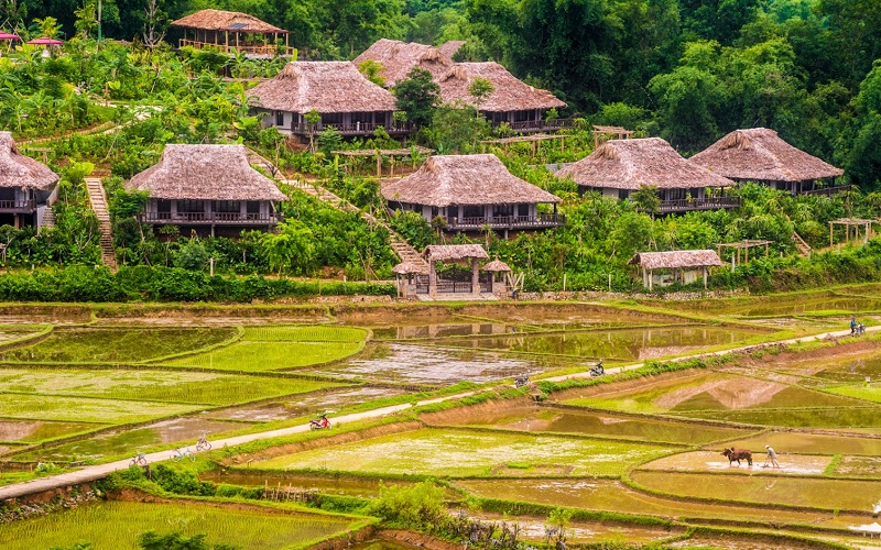 07.30 - 08.00 Am: Our touguide and shuttle bus will pick up at your hotels/hostels in the Hanoi Old Quarter. It takes around 4 hours to Mai Chau, stops at Hoa Binh for short break. On the way to Mai Chau, you will pass through the lush valley, rich with rice fields.