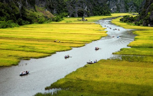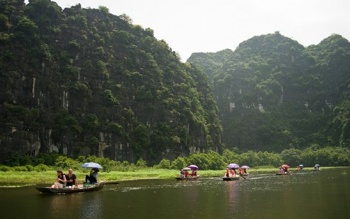 13:00: Discovering Tam Coc on the sampan (bamboo boat). With nearly 2 hours, tourists will have chance to mix with the local life, river, limestone mountains, fields… Passing through 3 caves: Hang Ca- first cave, Hang Hai- second cave, Hang Ba- the third cave by boat will bring to you excited feeling