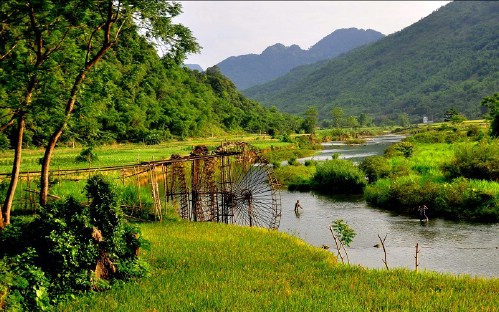 10:30 You will visit the Ba village and transfer through a suspension bridge over the Cham River to discover the giant waterwheels, and duck farm. It is an unique cultural feature of Thai and Muong people living in the nature reserve of Pu Luong to navigate water source for their farming activities.